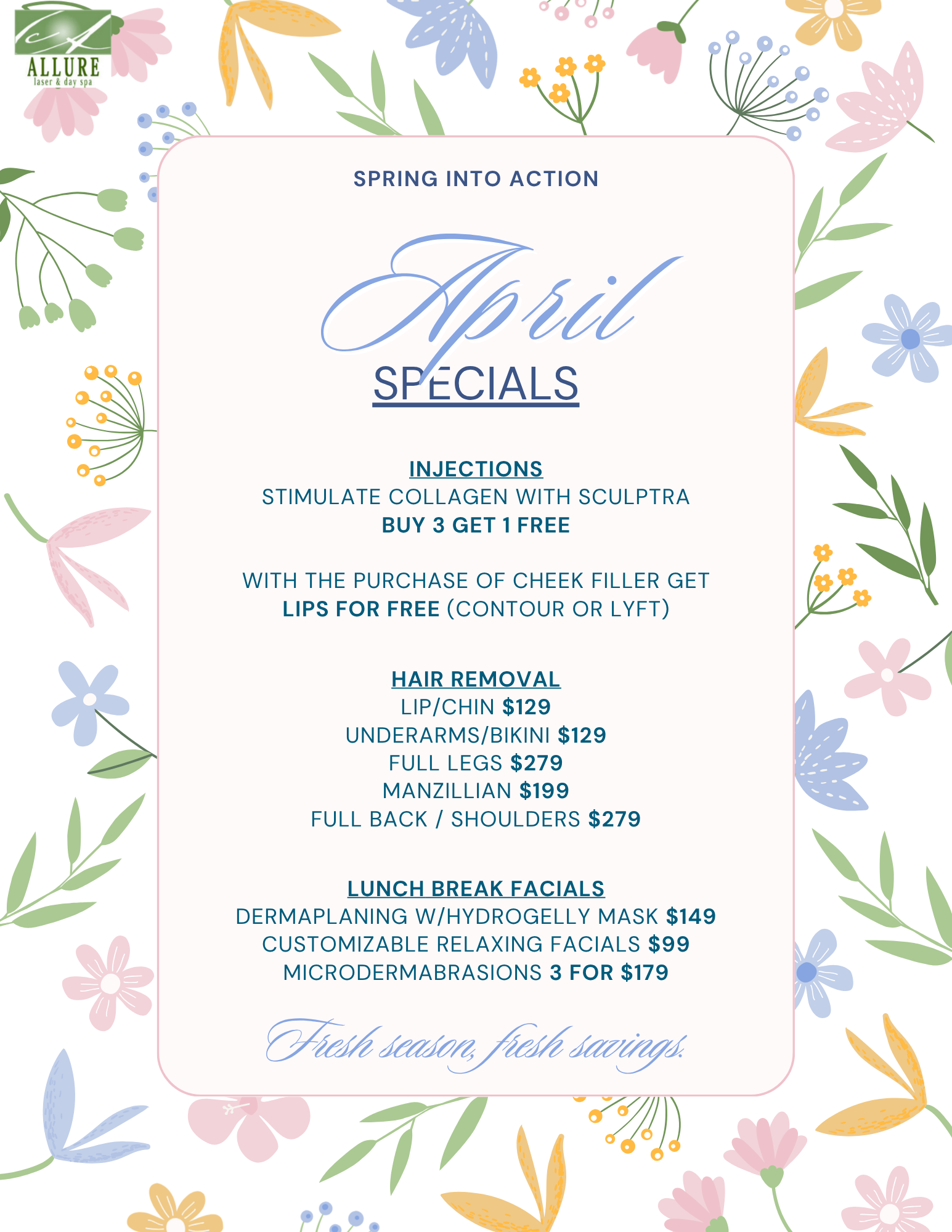 Now you can, and you do not have to traverse the globe to find this seemingly magical fountain of youth. The dedicated staff of Allure Laser & Day Spa recognizes the importance of good health that your active lifestyle demands.